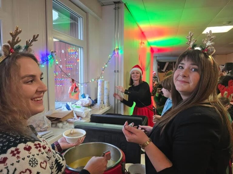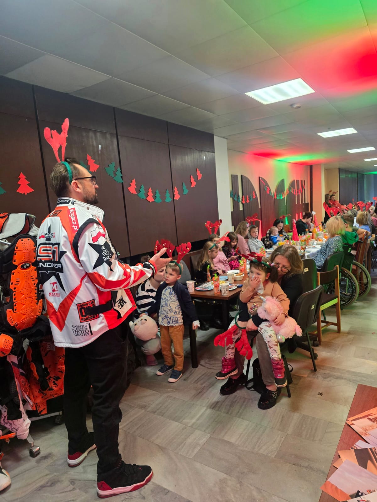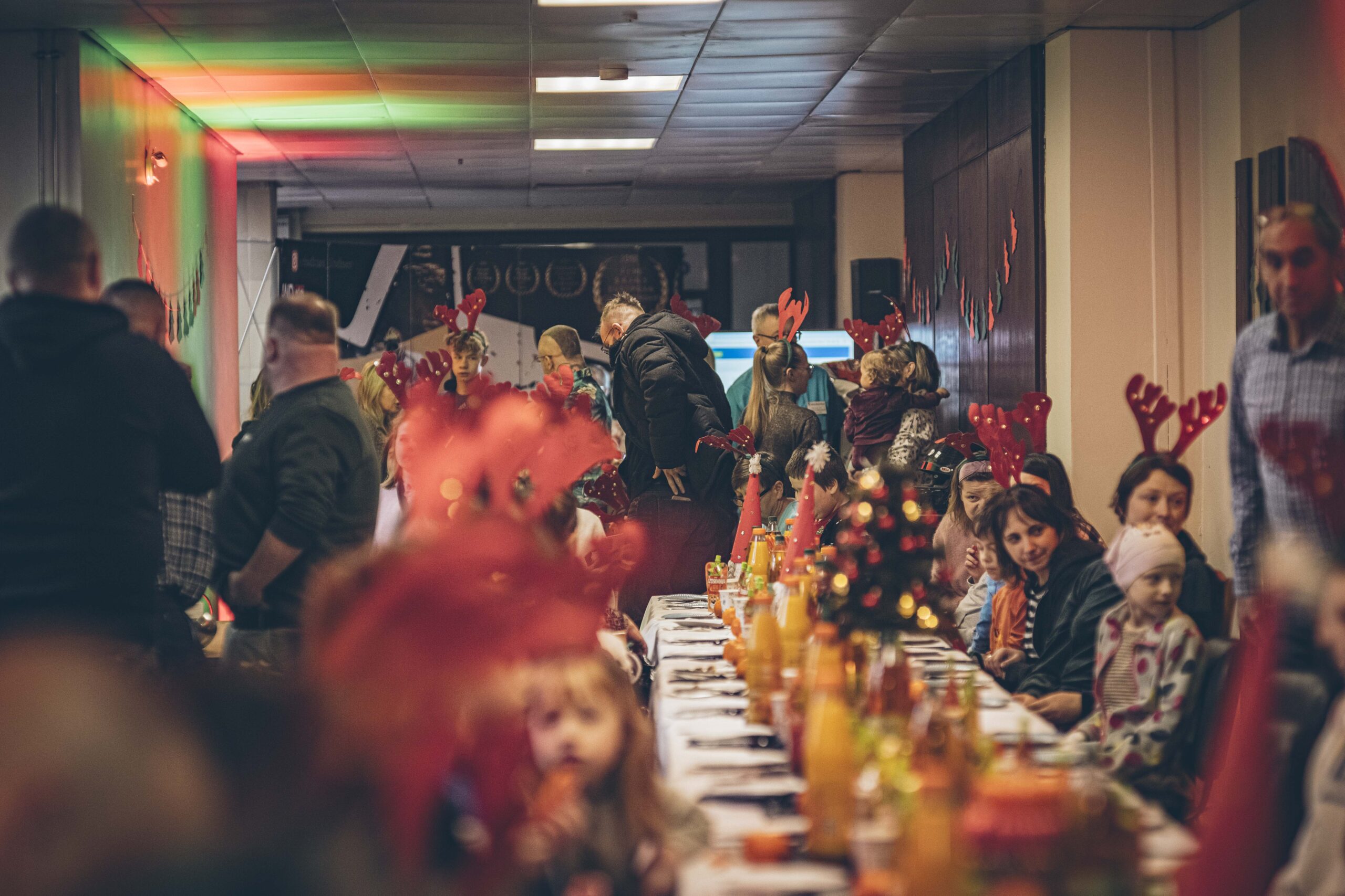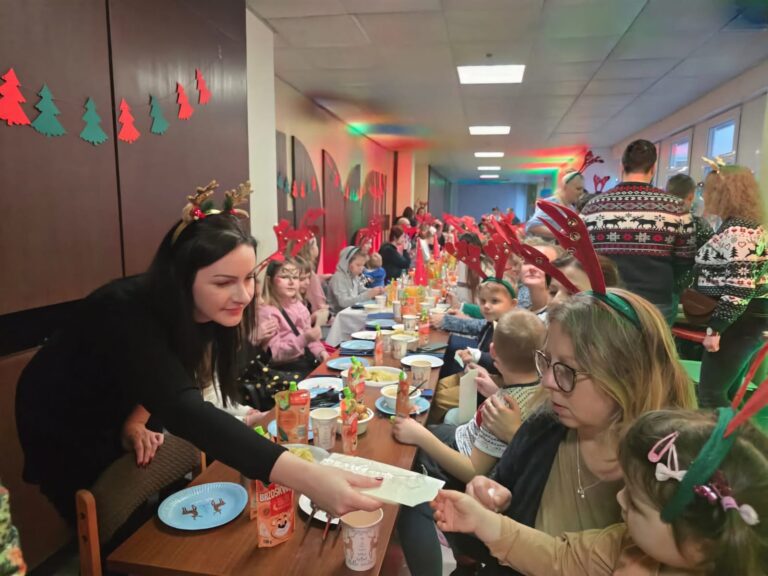 Nie zabrakło również Świętego Mikołaja, który wręczył dzieciom prezenty przygotowane dzięki wsparciu darczyńców. W trakcie spotkania najmłodsi bawili się przy animacjach, które przyniosły im wiele radości oraz spędzili czas w świątecznej, pełnej ciepła atmosferze. Świąteczne opaski z rogami reniferów, audiowizualne efekty oraz piękny wystrój przygotowany przez organizatorów dodatkowo podkreślały ciepło tego wydarzenia.