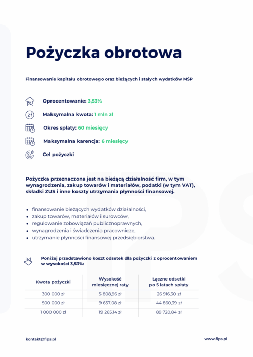 Pożyczka przeznaczona jest na bieżącą działalność firm, w tym wynagrodzenia, zakup towarów i materiałów, podatki (w tym VAT), składki ZUS i inne koszty utrzymania płynności finansowej: